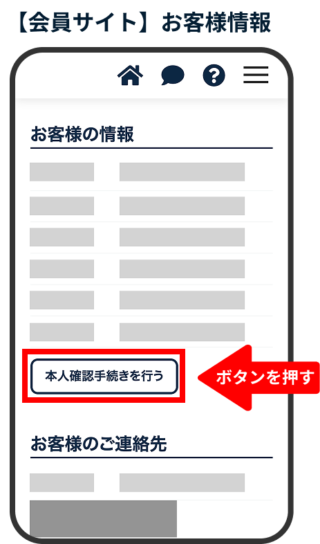 本人確認手続を行っていない場合、お客様の情報ページに「本人確認手続きを行う」ボタンが表示されます。